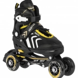 Universele 4-in-1 kinderset die inlineskates, quads/trekskates en ijs‑schaatsen in één uitrusting combineert. Dankzij de vijftraps maatverstelling 34–38, de comfortabele binnenschoen met zachte EVA‑schuim en het veilige driedubbele sluitsysteem is hij ideaal voor snelle groei en veilig rijden. Een aluminium frame, PU wielen 70×24 mm, ABEC‑7 lagers en roestvrijstalen ijzers zorgen voor een soepele glide en lange levensduur.