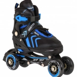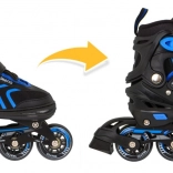Universele 4-in-1 set voor kinderen combineert inline skates, ijsschaatsen en een quad-variant in één. Dankzij de 5-traps maatverstelling (39–43), het aluminium frame, PU-wielen 72 mm / 85A en ABEC-7 lagers biedt hij een soepele rit en een lange levensduur. Het comfort wordt gewaarborgd door de halfzachte schoen met ventilatie, de geprofileerde EVA-inlegzool en de driedubbele sluiting voor een veilige pasvorm.