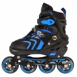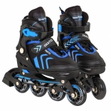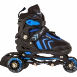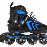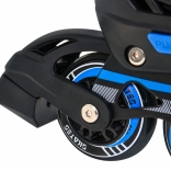 Het aluminium onderstel, ABEC-7 lagers en polyurethaan wielen 72×24 mm met hardheid 85A garanderen een soepele en snelle glij en betrouwbare wendbaarheid. De driedubbele sluiting – veters, klittenband en een gesp met vergrendeling – houdt de voet stevig op zijn plek. De rechter skate is uitgerust met een rem voor veilig stoppen.