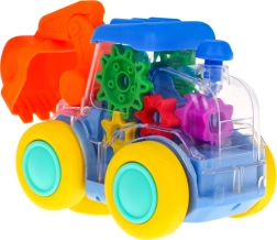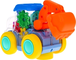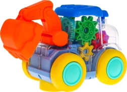 Deze kleurrijke bouwmachine combineert plezier en leren. De transparante carrosserie onthult draaiende tandwielen die tijdens het rijden tot leven komen en elke kleine bouwer fascineren. De graafmachine werkt op batterijen en draait dankzij een slim mechanisme na een botsing met een obstakel om en rijdt verder. Lichten en melodieën zorgen voor de sfeer, terwijl de beweegbare schep uitnodigt tot nog meer speelscenario’s.