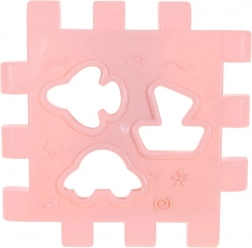 Verschillende uitsparingen en bijpassende stukjes (ster, vierkant, driehoek, cirkel, autootje, vliegtuig, bootje) leren vormherkenning en trainen de fijne motoriek.