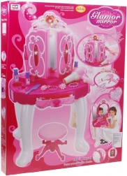 Deze interactieve roze kaptafel verandert elk speelmoment in een magisch schoonheidsritueel. De magische infrarood toverstaf opent de zijspiegels en op de hoofdspiegel verschijnt een prinses, terwijl lichten en melodieën een sprookjessfeer creëren. Dankzij de MP3-ingang kunnen kinderen hun favoriete liedjes afspelen voor nog meer plezier.