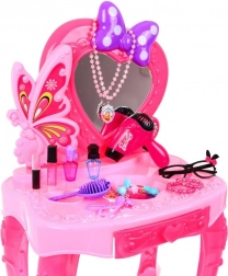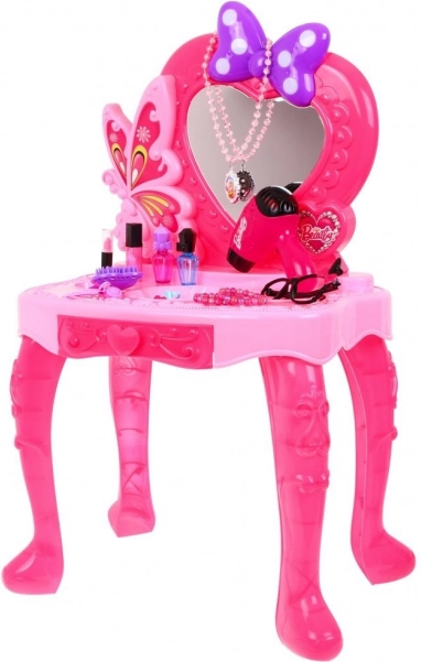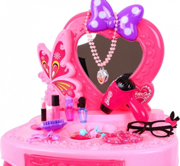 De strik boven de hartvormige spiegel licht op en knippert, begeleid door een melodie. Kinderen beleven zo een realistisch en betoverend spelletje beautysalon.