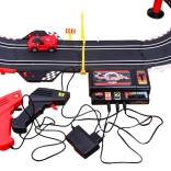 | - 2 raceauto’s, - 2 afstandsbedieningen, - baan in onderdelen, - slagbomen, - verkeersborden, - voeding, | |