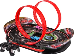 De baan is makkelijk te monteren en te vervoeren met een praktische draaggreep. De set bevat twee gedetailleerde raceautootjes met rubberen banden en twee ergonomische controllers met slinger. De set kan na aanschaf van extra accessoires ook worden omgebouwd naar een R/C-versie (afstandsbedieningen en voeding niet inbegrepen).
