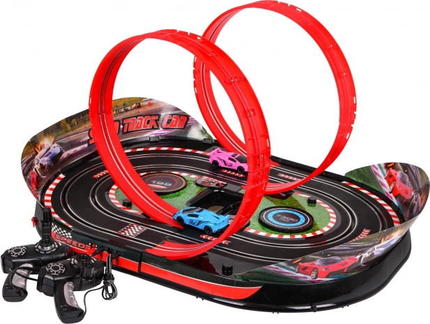 De Speed Track-raceset brengt actievol plezier voor kinderen vanaf 6 jaar. Dankzij de handmatige bediening met een slinger heb je de snelheid volledig in eigen hand – hoe sneller je draait, hoe sneller de auto over de baan schiet en beide loopings haalt. Interactieve licht- en geluidseffecten versterken de sfeer van echte races, en de rondeteller toont duidelijk wie de winnaar is.