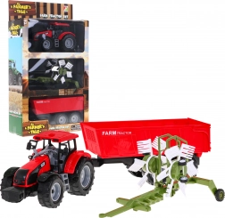 Realistische set voor kleine boeren vanaf 3 jaar: een rode tractor met wrijvingsaandrijving, een kippende aanhanger en een functionele hooischudder. Stevige uitvoering, bewegende onderdelen en de mogelijkheid om accessoires los te koppelen en te bevestigen stimuleren creatief spel en de ontwikkeling van de verbeelding.