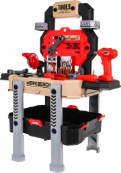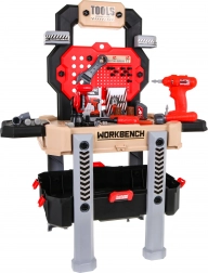 Deze realistische kinderwerkbank combineert een overzichtelijke werktafel met een ruime koffer, zodat het gereedschap altijd bij de hand is en makkelijk kan worden opgeruimd. Dankzij 78 elementen en de functionele boor/schroevendraaier kunnen kinderen schroeven, zagen en monteren en leren ze de basisprincipes van werkplaatsvaardigheden.