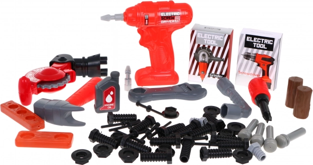 De boor/schroevendraaier maakt realistische geluiden tijdens het schroeven en heeft verwisselbare opzetstukken voor nog leuker spel.