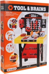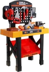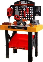 Deze geweldige gereedschapstafel is de droom van elke kleine monteur. Een kind zal zich er een echte reparateur mee voelen die zijn eigen werkhoek leidt. De tafel biedt een breed spectrum aan gereedschappen die zijn georganiseerd op een praktische standaard.