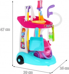 De wagen is ontworpen zodat alle schoonmaakmiddelen gemakkelijk toegankelijk en draagbaar zijn. De vrolijke kleuren maken het spelen leuker en stimuleren de verbeelding van kinderen.