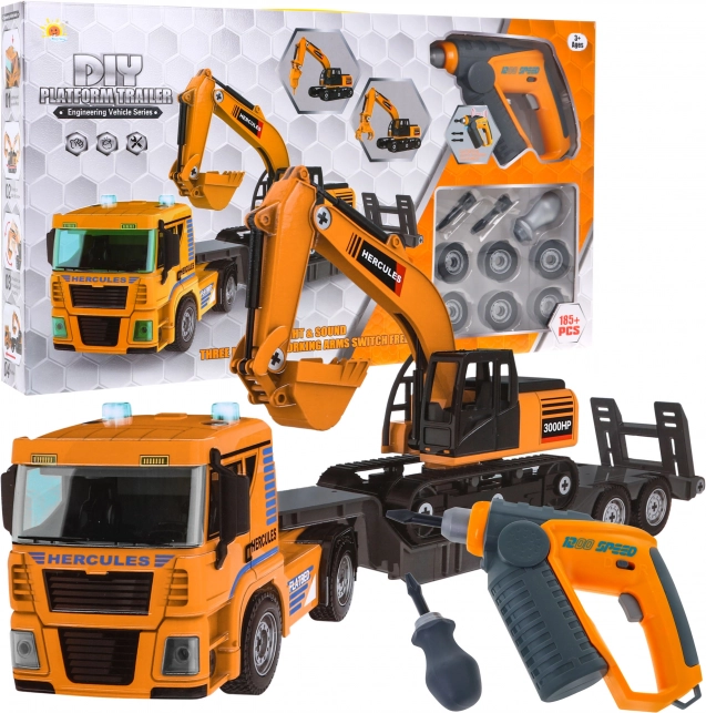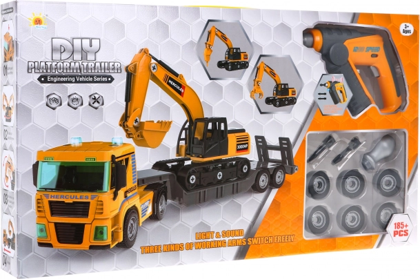 | Beschrijving | Set vrachtwagen + graafmachine voor doe-het-zelvers 185 st. |