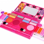 Het palette bevat tal van veelkleurige oogschaduws en lippenstiften, applicators/kwastjes en een handig spiegeltje. Dankzij de slimme constructie klap je het in een oogwenk uit tot een overzichtelijke werkruimte en sluit je het na het make-uppen eenvoudig weer.