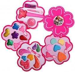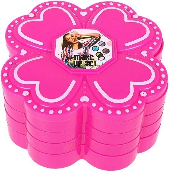 Dit charmante bloemenetui met make-up maakt elk kind blij dat graag schoonheidssalon speelt. De uitklapbare constructie met vier niveaus en een deksel verbergt een kleurrijk palet aan tinten en texturen voor fantasierijk schminken van poppen én veilige kindervermaak.
