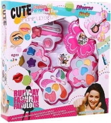 Poeder-, gel- en glinsterende oogschaduw, lippenstift, lipgloss en nagellak stimuleren creatief schminken en spel.