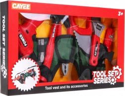 - Verstelbare gereedschapsriem, boormachine, 3 verwisselbare bits, schroevendraaier, tang, Engelse sleutel, zaag, hamer