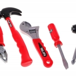 Hamer, zaag, schroevendraaier, tang en Engelse sleutel – allemaal van duurzaam kunststof voor veilig en leuk spelen thuis en in de tuin.