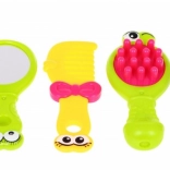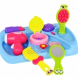 Spiegeltjes, föhn, borstel, kam, “parfum” en “lippenstift” stimuleren de verbeelding en de ontwikkeling van sociale vaardigheden tijdens rollenspel.