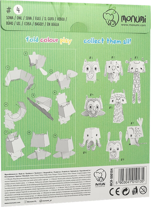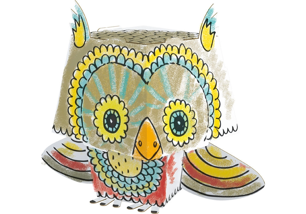 Deze driedimensionale uilenpuzzel biedt kinderen uren creatieve plezier. Professionele zwarte bedrukking met duidelijke contouren nodigt uit om in te kleuren en stimuleert fijne motoriek en fantasie. Het karton absorbeert vocht goed, kreukt niet en vlekt niet door, waardoor het geschikt is voor diverse tekentechnieken.