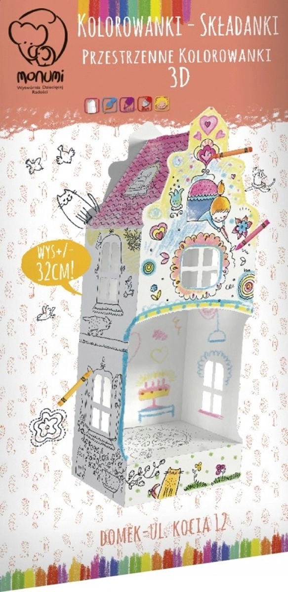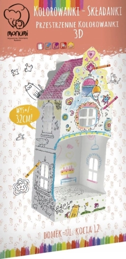 Papieren 3D-kleurpuzzel – kat – Huisje "ul. Kocia 12" ruimtelijke 3D-kleurplaat