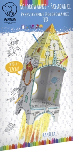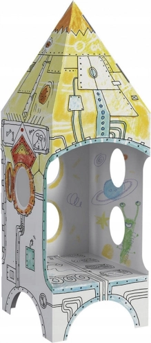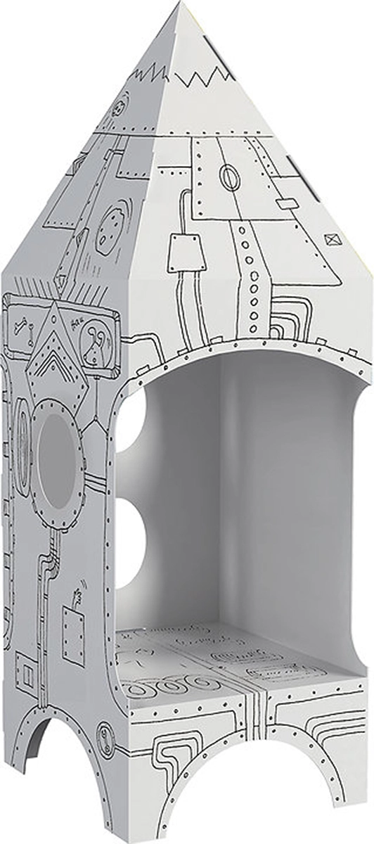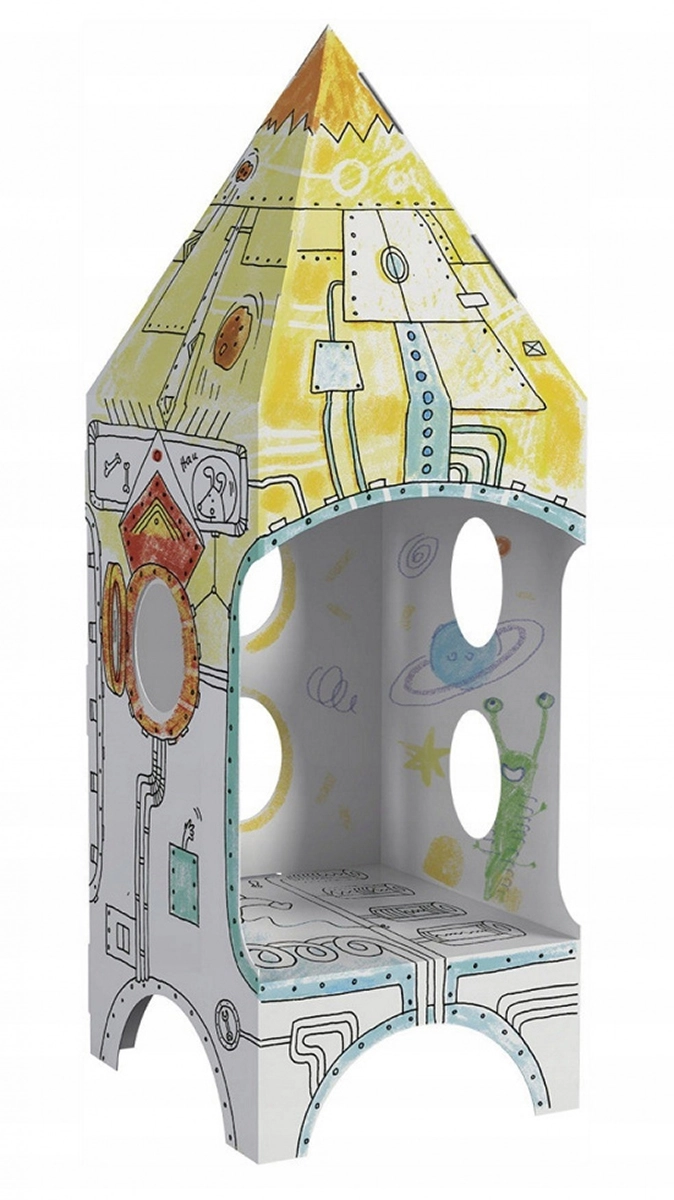 Het egale kartonnen oppervlak neemt kleurpotloden, stiften en verf uitstekend op, dus het uiteindelijke uiterlijk is volledig aan de jonge makers. Na het in elkaar zetten dient de raket als originele speeldecoratie en als duurzame speelgoedset die creativiteit, geduld en handigheid stimuleert.