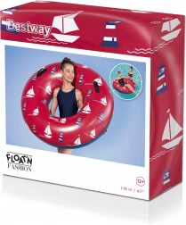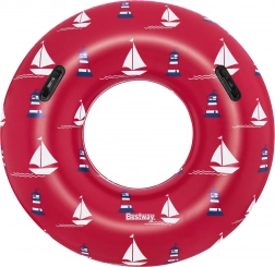 Geniet van de zomer met de ruime opblaasbare zwemring van BESTWAY met een diameter van 119 cm. Het duurzame vinyl, de comfortabele 2 handgrepen en het veiligheidsventiel zorgen voor stabiliteit, comfort en waterpret. Het stijlvolle maritieme design in het rood past zowel bij het zwembad als op het strand.