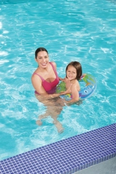 Gemaakt van stevig, vooraf getest vinyl dat bestand is tegen lekken en slijtage bij normaal gebruik in het zwembad en bij het buitenbad.