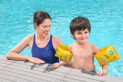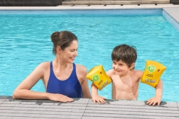 Lichte en veilige opblaasbare zwemvleugels van BESTWAY voor de allerkleinste zwemmers helpen kinderen vertrouwen in het water op te bouwen. Dankzij twee luchtkamers, duurzaam PVC-materiaal en een terugslagventiel tegen luchtverlies bieden ze stabiele drijfkracht en comfort tijdens het spelen in het zwembad, aan zee en op het meer. Het vrolijke gele design met een groene vis spreekt kinderen aan en motiveert ze om te leren zwemmen.