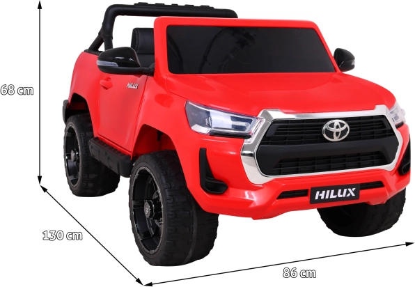 Het gelicentieerde ontwerp van de legendarische pick-up TOYOTA Hilux in kinderuitvoering verrast met realistische details, te openen deuren en een optionele 4x4/2x2-aandrijving. De sterke 12V/14Ah-accu en vier 45 W-motoren zorgen voor een soepele start en voldoende vermogen voor zowel de tuin als harde ondergronden.