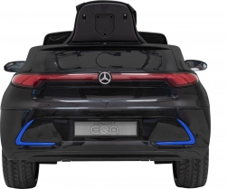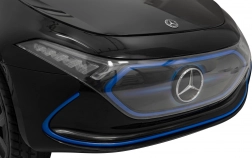 De zwarte kinderauto MERCEDES-BENZ AMG EQA biedt een realistische rijervaring dankzij de vloeiende start, vering op voor- en achteras en een comfortabel zitje van zwarte eco-leer met 5-puntsgordel. Met de 2,4 GHz afstandsbediening kunnen ouders te allen tijde de controle overnemen, inclusief noodstop met één knop.