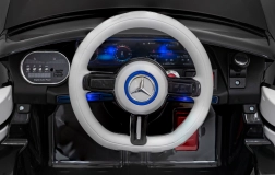 Stijlvolle elektrische kinderauto geïnspireerd op het model MERCEDES-BENZ AMG EQA met twee krachtige motoren 2×35 W, 12 V/7 Ah-accu, comfortabele EVA-wielen en 2,4 GHz afstandsbediening met Stop-functie voor maximale veiligheid. Inclusief LED-verlichting, openende deuren met vergrendeling en een uitgebreid audiopaneel met USB/SD/AUX, MP3 en kleurendisplay.