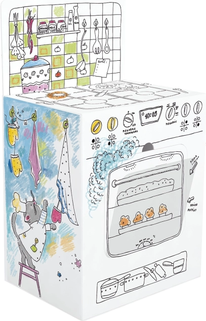 De gemonteerde keuken is stabiel, duurzaam en licht. Professionele graphics en een heldere zwarte print zijn ideaal om in te kleuren met kleurpotloden, stiften, markers en verf. Het karton absorbeert vocht goed, gaat niet golven en drukt niet door.