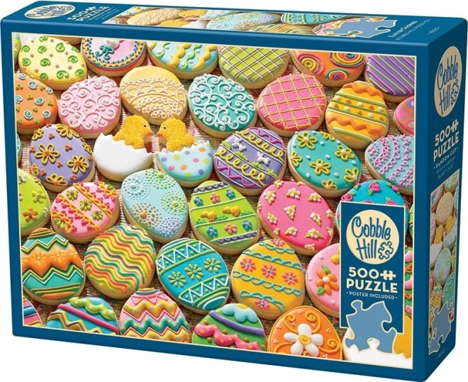 De COBBLE HILL-puzzel met het motief van vrolijke paaskoekjes zal alle liefhebbers van uitdagingen bekoren. De speciale, onconventionele stans volgt geen standaardraster, waardoor hoeken en randen niet altijd in één lijn liggen en de stukjes ongewone vormen hebben. Daardoor is het leggen leuker en uitdagender dan bij klassieke puzzels.