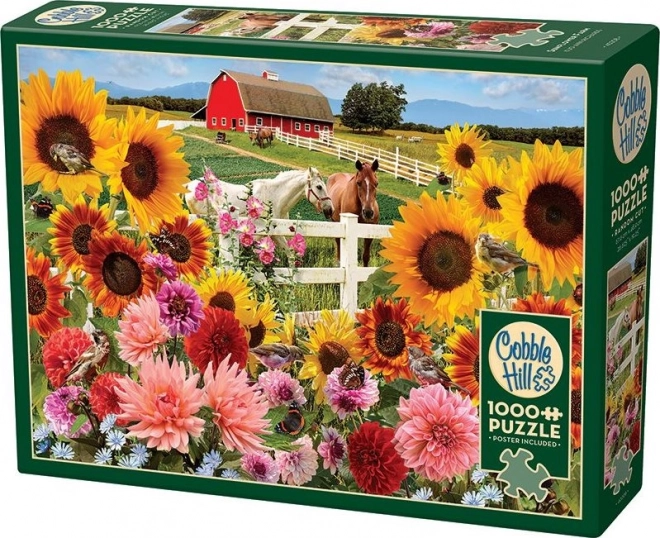 Ontdek de charme van het platteland met de prachtige puzzel Zonnebloemenboerderij van Cobble Hill, bestaande uit 1000 stukjes. Deze spannende en veeleisende puzzel kenmerkt zich door onconventioneel gevormde stukjes, wat bijdraagt aan een boeiende legervaring. De ongewone indeling verhoogt de moeilijkheid ten opzichte van standaard rasterpuzzels en laat meer creativiteit toe tijdens het leggen.