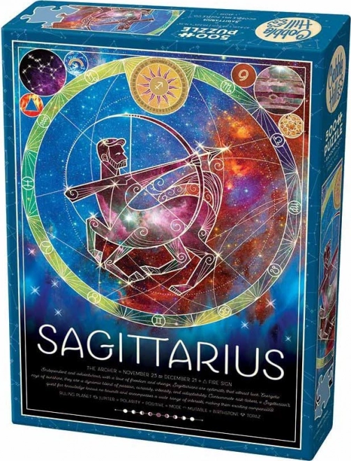 COBBLE HILL-puzzels onderscheiden zich door een unieke stans: de stukjes hebben geen klassiek raster, hun hoeken en randen liggen niet op één lijn en ze komen in onconventionele vormen. Dat zorgt voor een leuke uitdaging voor alle puzzelliefhebbers en het mooie motief van de Boogschutter uit de horoscoop levert na het leggen een decoratief resultaat op.