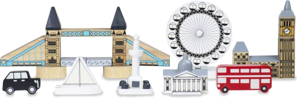 Deze prachtige blokken tonen beroemde Londense gebouwen zoals de Tower Bridge, Big Ben en het London Eye.