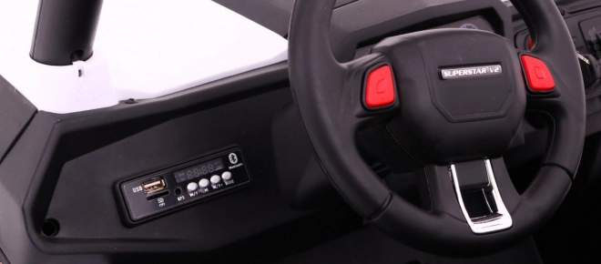 Het multimediapaneel speelt favoriete nummers af via Bluetooth, USB, SD of AUX. Geluiden in het stuur en LED-verlichting zorgen voor een realistische ervaring.