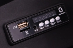 - MP3, SD, FM-radio, voorgeprogrammeerde melodieën, AUX, USB, Bluetooth, geluiden op het stuur