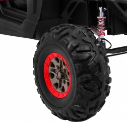 Krachtige prestaties worden geleverd door 4 motoren van 45 W gevoed door een duo batterijen 2 × 12 V / 7 Ah. Schakelen tussen 2x4- en 4x4-aandrijving laat je de rit aan het terrein aanpassen, terwijl de soepele start en de veerkrachtige ophanging met verstelbare schroefschokdempers comfort op oneffenheden garanderen. Grote EVA-wielen 35 × 15 cm leveren stabiliteit en stille werking.