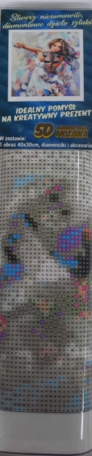 Instructies voor diamantschilderen: Het doek is bedekt met lijm en beschermd door een transparante folie. Verwijder de folie stukje bij beetje zodat de plaklaag schoon blijft. De steentjes corresponderen met de tekens op het doek volgens de bijgeleverde legenda en zijn gesorteerd op kleur.