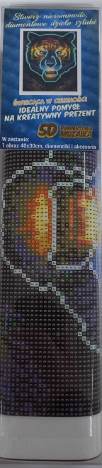 Ontdek ontspannen knutselplezier voor jong en oud: een diamond-painting set met tijgermotief in formaat 30 × 40 cm. Een deel van de steentjes licht op in het donker na blootstelling aan licht, waardoor het uiteindelijke schilderij een magische uitstraling heeft. In de set zit alles wat je nodig hebt – voorbedrukt doek, applicator, was, bakje en gekleurde steentjes. Het maken is eenvoudig, leuk en vereist geen artistieke vaardigheden.