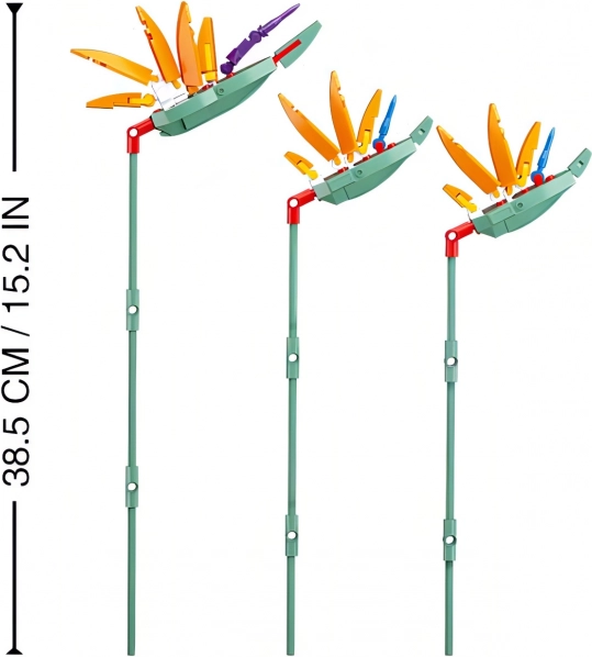 De set is geliefd om zijn levendige kleurencombinatie die echte bloemen perfect nabootst. Dankzij de heldere tinten oranje en groen springt hij direct in het oog.