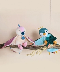 Deze schattige pluchen knuffel is niet alleen een knuffelbare vriend voor je baby, maar ondersteunt ook de ontwikkeling van zintuigen en fijne motoriek. De vleugels, staart en het hoofdje zijn versierd met kleurrijke lintjes die kinderen kunnen friemelen en zo hun tastzin ontwikkelen.