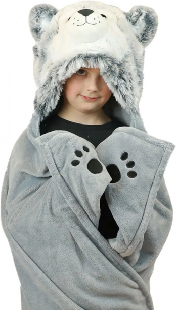 De warme Cozy Noxxiez Husky deken maakt van gewoon cocoonen een feestje. Dankzij het pluche fleece is hij ongelooflijk zacht, huidvriendelijk en heerlijk warm. De capuchon met schattig huskygezicht en de twee hoekzakken met pootmotief trekken de aandacht en stimuleren de creativiteit tijdens het spelen.