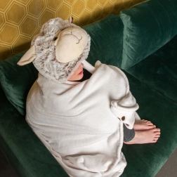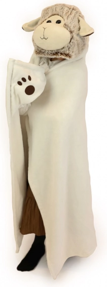 Deze schattige, warme deken met capuchon verandert elk moment van knus wegkruipen in een avontuur. De pluche capuchon met oortjes en schapengezicht en de praktische pootvormige zakken stimuleren de fantasie van kinderen en houden de handen lekker warm. De lichte en ademende fleece is aangenaam om aan te raken en biedt uitstekende warmte.