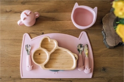 Het bord is gemaakt van 100% bamboe met een niet-giftige lak en heeft een glad oppervlak dat eenvoudig te reinigen is. De speelse dierenvorm motiveert kinderen om te eten en maakt elke maaltijd leuker.