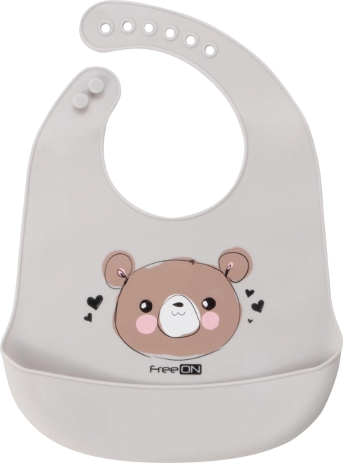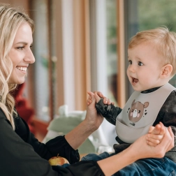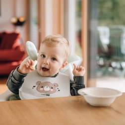 Wordt u elke keer dat u uw kind voedt geconfronteerd met een strijd tegen vlekken? Deze siliconen slab met beertjesmotief helpt u! Hij is zacht, licht en comfortabel, zodat uw kind hem zelfs tijdens langere periodes aan de tafel kan verdragen. Dankzij de verstelbare sluiting in de nek groeit de slab mee met uw kind. Een grote opvangzak zorgt ervoor dat voedselresten terechtkomen waar ze horen, en niet op de kleding van uw kind.