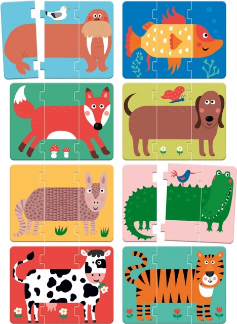 De doos bevat 24 stukken met afmetingen van 8x18 cm, een optimale grootte voor kleine kinderhanden. De puzzel is gemaakt van kwaliteitskarton, wat veiligheid en duurzaamheid tijdens het spelen garandeert. Het speelse ontwerp en de mogelijkheid om stukjes onderling te verwisselen bieden eindeloze speelmogelijkheden.