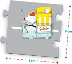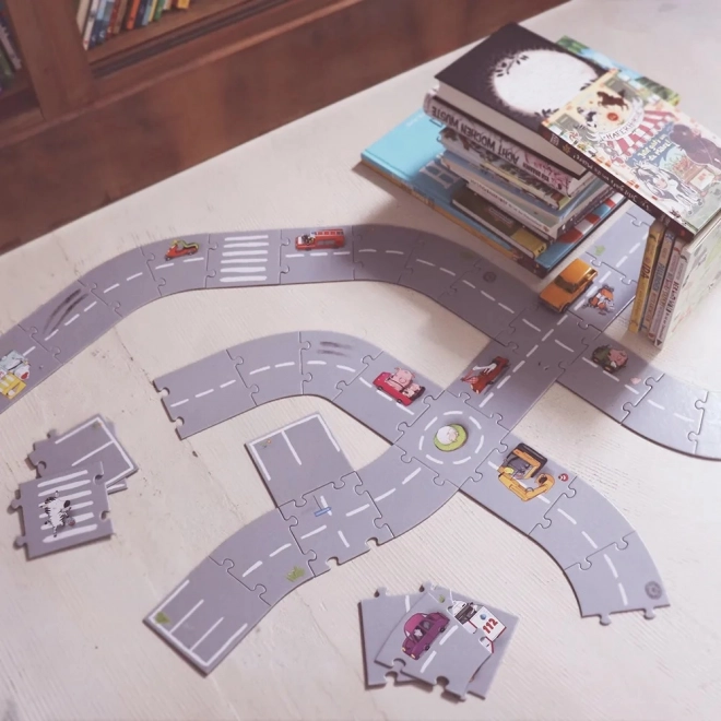 Dankzij het slimme formaat van de stukken veranderen kinderen eenvoudig de indeling van de route en ontdekken ze steeds een nieuwe combinatie. Hoogwaardig papier en karton zorgen voor prettig puzzelen en een lange levensduur. Geschikt voor kleine automobilisten vanaf 4 jaar.