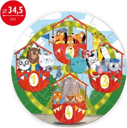 Deze mooie ronde puzzel met een dierenthema op het reuzenrad biedt kinderen spelenderwijs leren. Dankzij het overzichtelijke aantal stukjes en het toegankelijke ontwerp is de puzzel geschikt voor de eerste puzzelsuccessen en gezellige momenten met ouders.